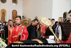 Президент Петро Порошенко з дружиною Мариною у соборі Воскресіння Христового в Києві прощаються з кардиналом Любомиром Гузаром, 4 червня 2017 року