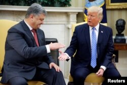 Президент України Петро Порошенко заявляє, що під час зустрічі з президентом США Дональдом Трампом у Вашингтоні обговорив питання імплементації Мінських угод.