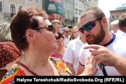 «Я учасник АТО і прийшов, щоб тут виступити, але мені не дають слова, бо виступають лише від «Самопомочі», і ще мене обізвали «тітушкою». Я просто хотів сказати, що саме через міського голову Львова і його безгосподарність така ситуація у місті зі сміттям, і йому це вигідно», – наголосив учасник віча Сергій.