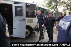 Силовики під час огляду автобуса і двох автомобілів, на яких прибули затримані, вилучили один травматичний та один газовий пістолети, холодну зброю, провокативні транспаранти та прапори, піротехніку (фаєри), макет шибениці, додають у відомстві.