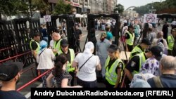 «Правоохоронці слідкують за порядком і за необхідності оглядають речі учасників заходу і перевіряють документи, що засвідчують особу. Грубих порушень громадського порядку не зафіксовано», – заявив керівник поліції Києва Андрій Крищенко.