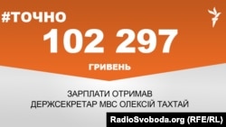 Державний секретар Міністерства внутрішніх справ Олексій Тахтай у серпні отримав заробітну плату в розмірі 102 297 гривень. Така інформація міститься в Єдиному державному реєстрі декларацій осіб, уповноважених на виконання функцій держави або місцевого самоврядування, повідомляє #Точно, проект Радіо Свобода.