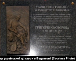 Меморіальна дошка, присвячена Григорієві Сковороді, була встановлена в Токаї 20 березня 1998 року на кошти Товариства української культури в Угорщині й Товариства угорської культури в Закарпатті. На дошці Сковорода зображений як філософ-мандрівник, а збоку є напис із цитатою філософа «У моїй любій Гунґарії» українською та угорською мовами. Автор меморіальної дошки – українська художниця Вікторія Чернак.