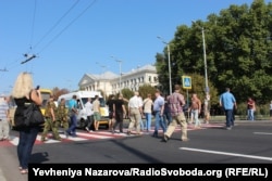 Учасники мітингу також на 20 хвилин перекрили рух транспорту центральним проспектом міста, рухаючись безперервно пішохідним переходом і пропускаючи лише приватні авто та карети швидкої.