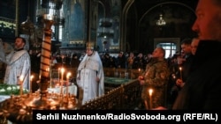У Києві у Володимирському соборі відбулася поминальна служба за загиблими оборонцями Донецького аеропорту та усіма українськими військовими, які загинули з початку військового конфлікту на сході України.