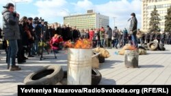 Після акції люди поклали квітів до пам’ятного знаку Героям Революції гідності, встановленому на площі.