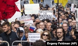Учасники мітингу у столиці Росії Москві закликали звільнити українського режисера Олега Сенцова, який у російському ув’язненні тримає голодування вже 28-й день, та інших утримуваних у Росії за ґратами політичних в’язнів – і українських, і російських.