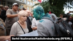 Як повідомляє кореспондент Радіо Свобода, після цього Шабуніну знадобилася допомога медиків, зеленка потрапила йому в очі.