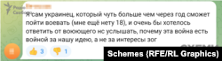 «Я сам українець, який трохи більше ніж через пів року зможе піти воювати (мені немає 18 років), і дуже б хотілося від NS (неонацистська організація NS/WP «National Socialism/White Power» – ред.), що воює, почути, чому ця війна є війною за нашу ідею, а не за інтереси ЗОГ (антисемітська теорія змови ZOG – ред.)».