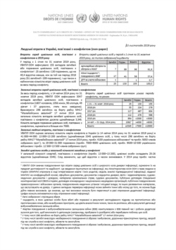 «У період з 1 січня по 31 жовтня 2019 року, УВКПЛ ООН зафіксувало 155 випадків загибелі або поранення цивільних осіб, пов'язаних з конфліктом: 25 загиблих і 130 поранених, що на 40,4 відсотка менше, ніж за той же період 2018 року (51 загиблий і 209 поранених), і що також є найнижчою кількістю втрат серед цивільних осіб за весь період конфлікту», – заявили в УВКПЛ ООН.