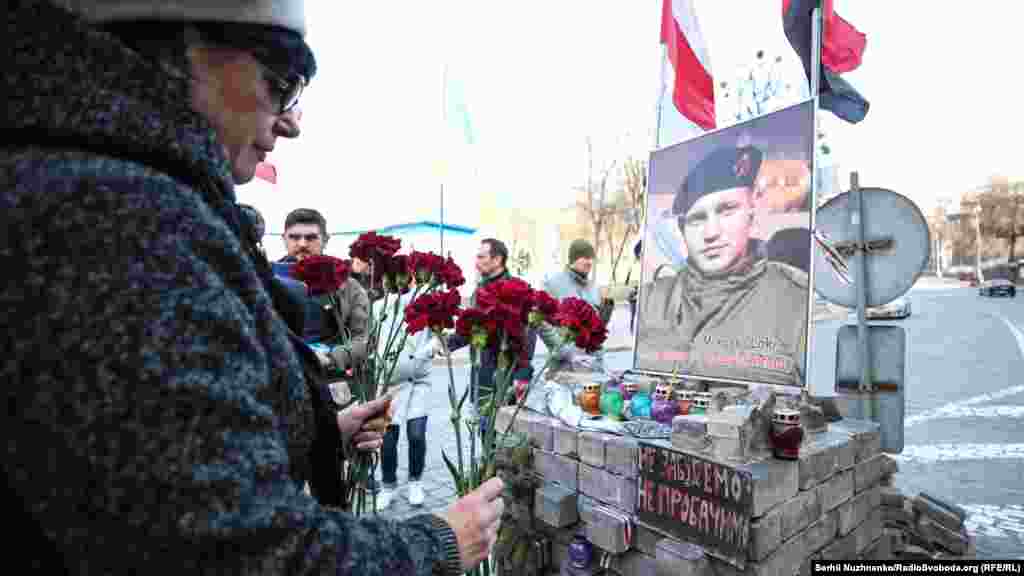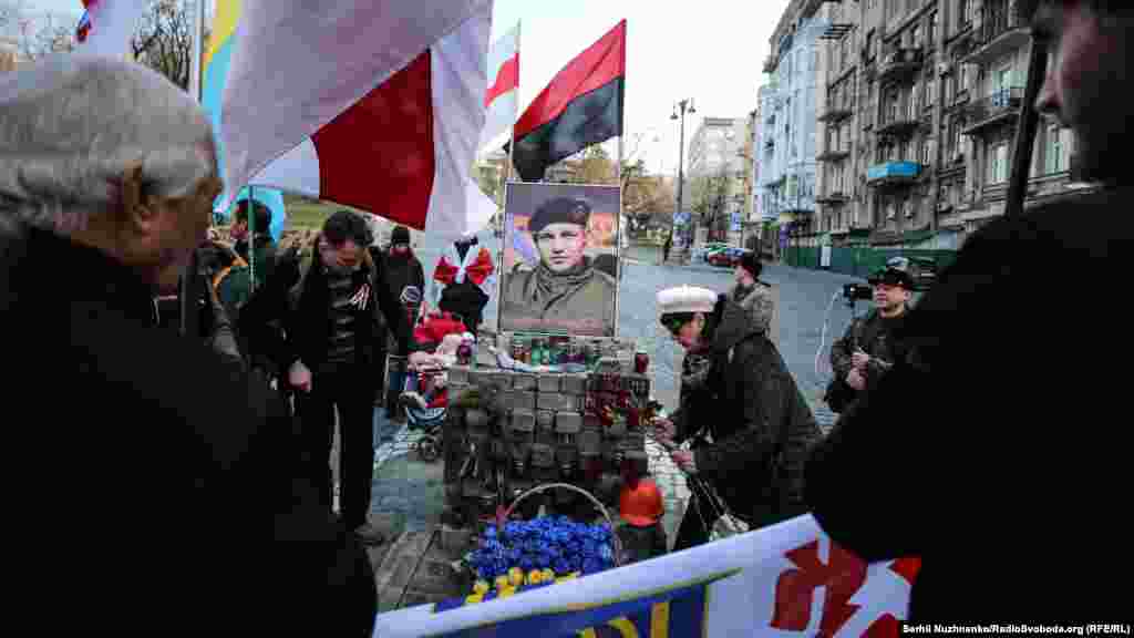 Учасники акції пройшли під біло-червоно-білими прапорами з майдану Незалежності до вулиці Грушевського де поклали квіти до пам’ятника білорусу Михайлу Жизневському, одному з перших загиблих на Євромайдані, а також ще одному Герою Небесної сотні Якову Зайку, колишньому депутату Верховної Ради, білорусу за походженням.