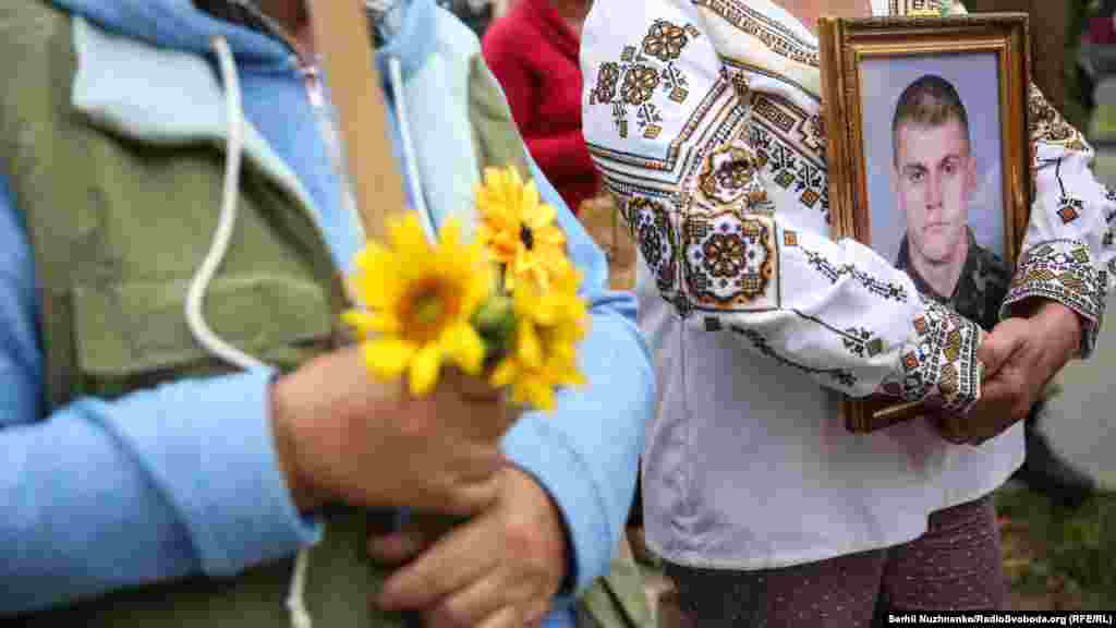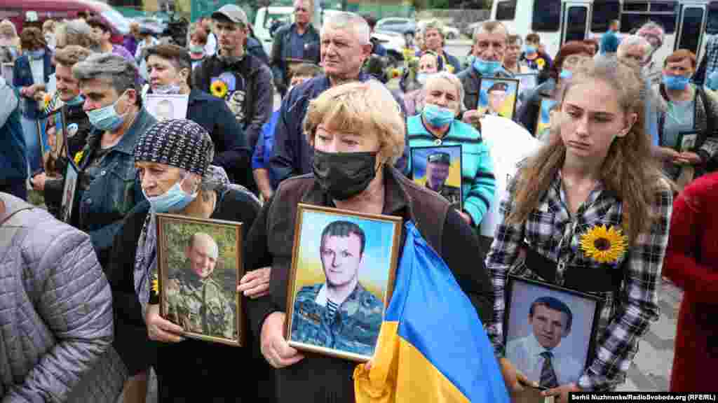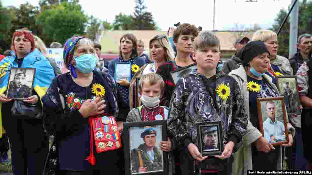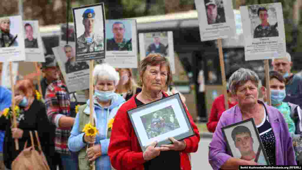 У Києві 28 серпня біля посольство Російської Федерації відбулась акція «Час не лікує», на яку вийшло більше 100 матерів, дружин та дітей українських військових, які загинули внаслідок російської агресії на Донбасі. Вони тримали в руках портрети загиблих чоловіків та батьків.