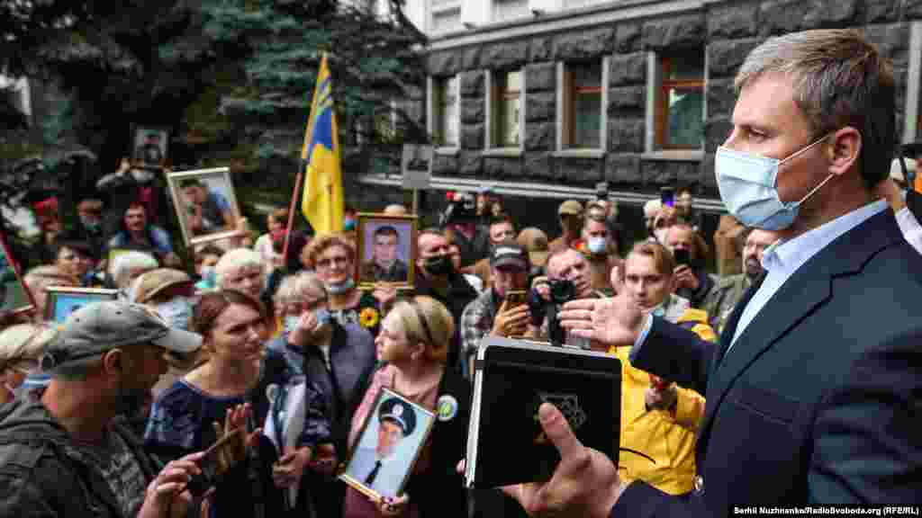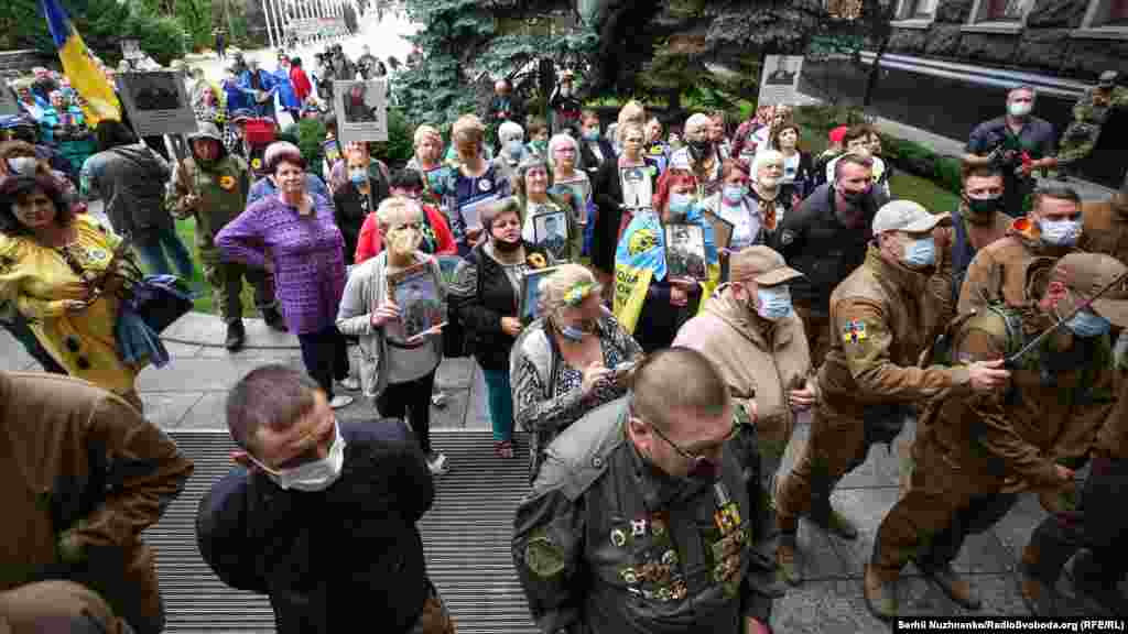 Після завершення мітингу біля посольства Росії, акція продовжилась біля будівлі Офісу Президента. Учасники акції вимагали покарання винних у загибелі українських військових і добровольців. Зокрема, матері та дружини закликали президента Володимира Зеленського зустрітися з ними, а також розсекретити документи щодо подій в Іловайську, Дебальцевому і Слов'янську.