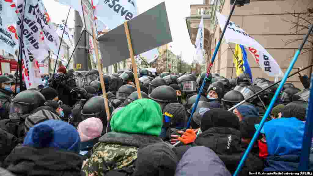 Учасники акції блокували входи до Верховної Ради для депутатів, через що між протестувальниками і поліцією виникала штовханина.