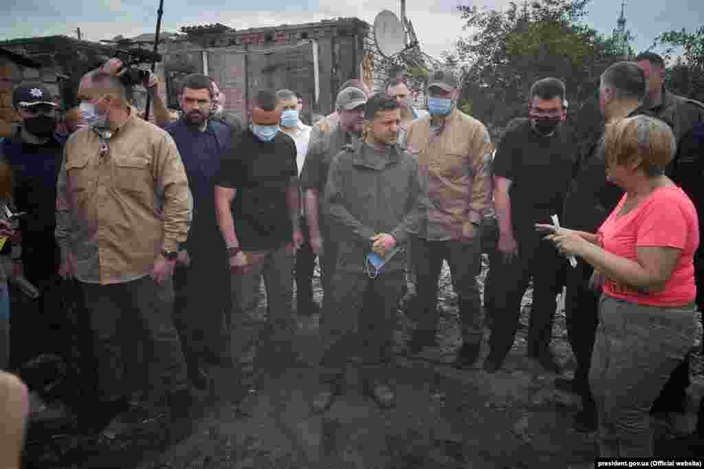 Раніше Зеленський повідомив, що, за попередніми даними, внаслідок пожеж, що виникли 6 липня, загинули п’ятеро людей, повністю зруйновані 24 житлові будинки, ще 35 – пошкоджені. Він додав, що держава надасть компенсацію по 300 тисяч гривень власникам знищених будинків та по 20 тисяч гривень – пошкоджених.