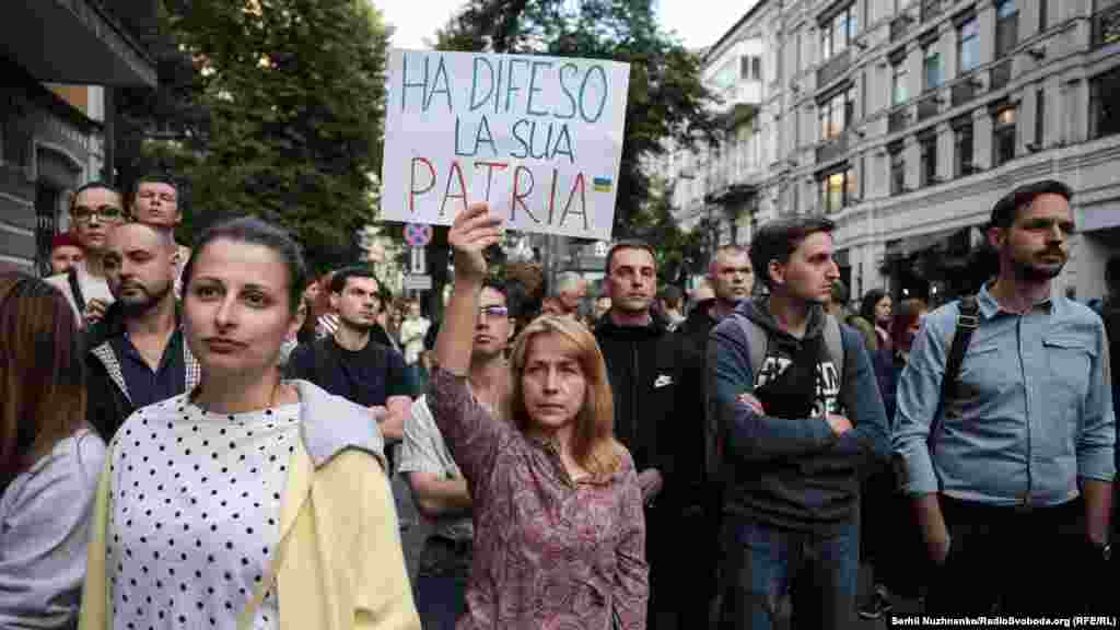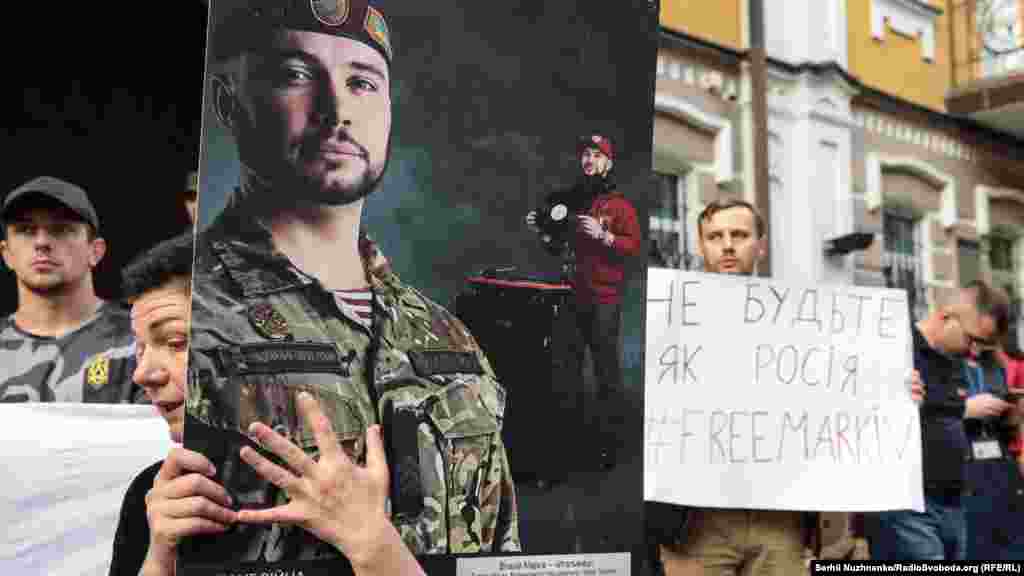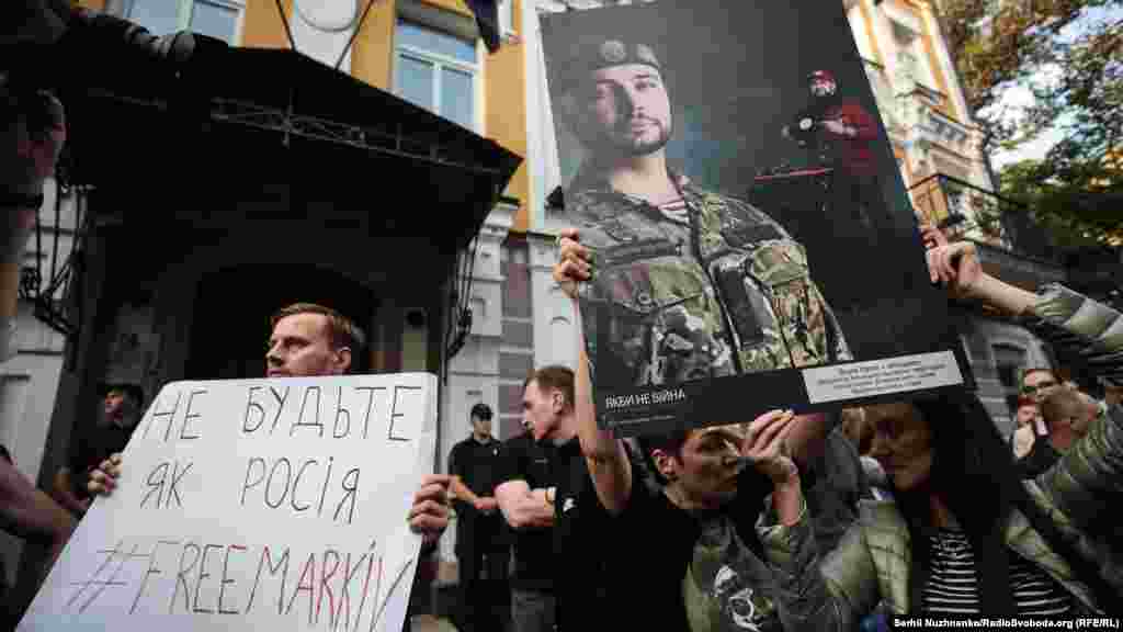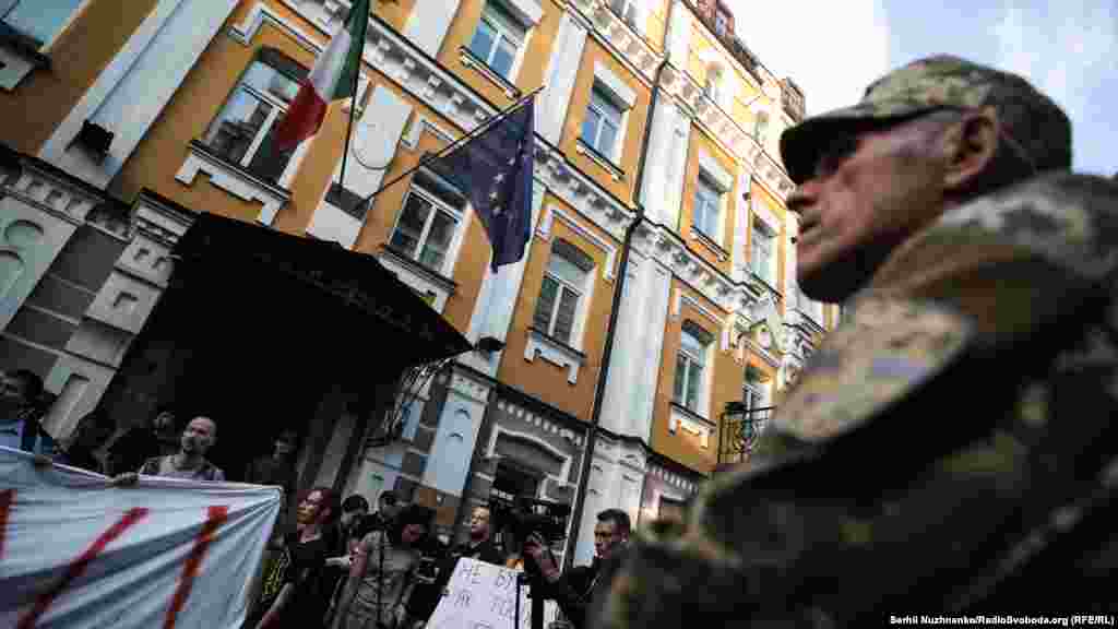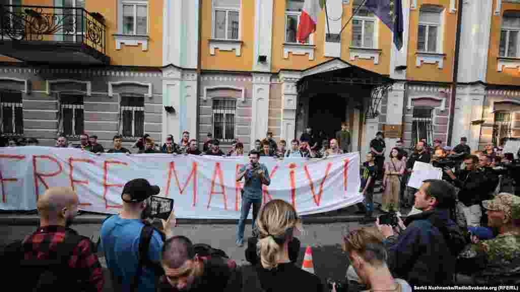 Близько двох сотень киян вийшли під посольство Італії в Києві, аби вимагати звільнення нацгвардійця Віталія Марківа.