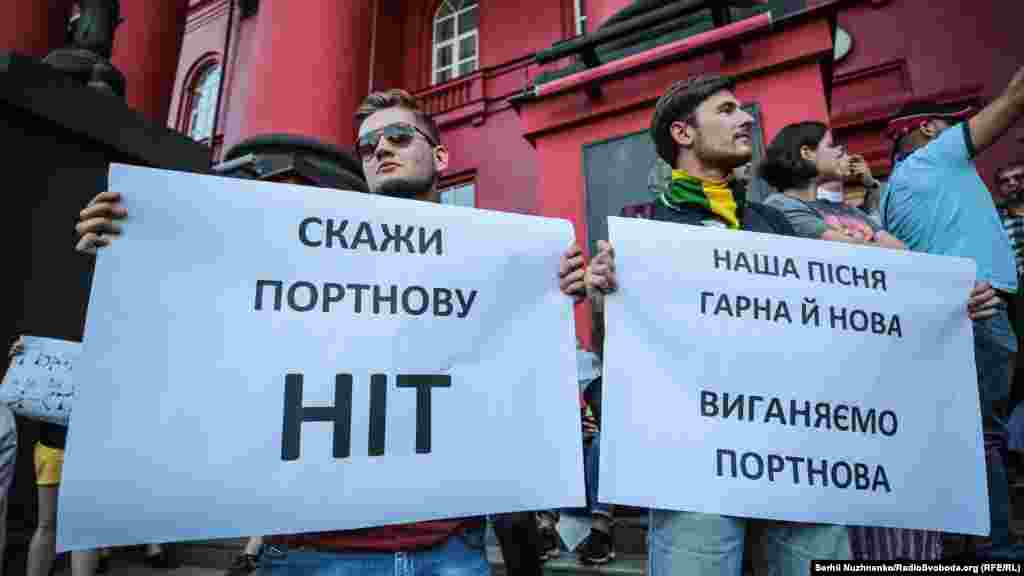 Кількасот студентів Київського національного університету імені Тараса Шевченка прийшли ввечері 20 червня до свого навчального закладу. Вони протестували проти того, що колишнього заступника голови Адміністрації президента за правління Віктора Януковича Андрія Портнова взяли на роботу викладачем на кафедру конституційного права юридичного факультету.
