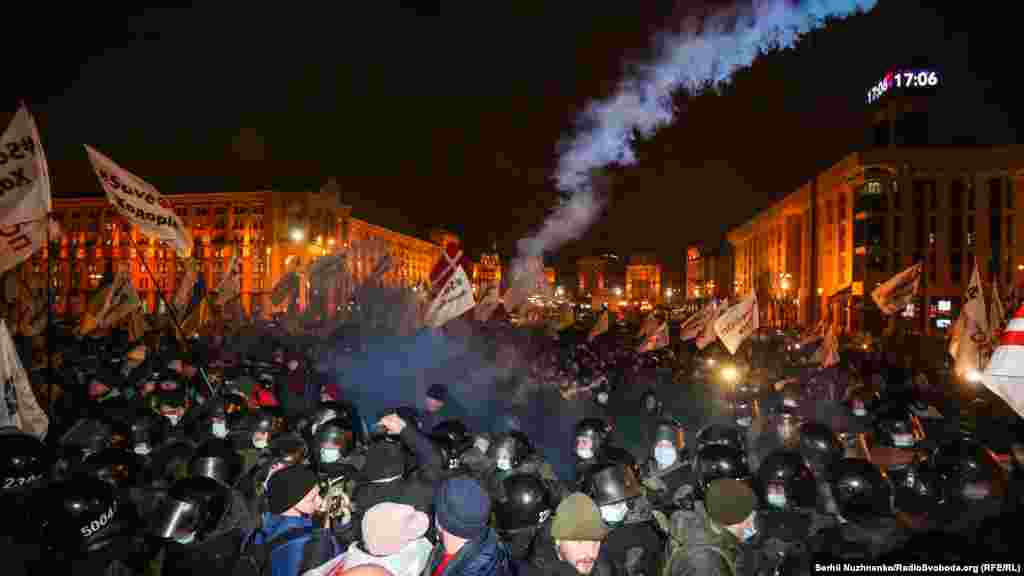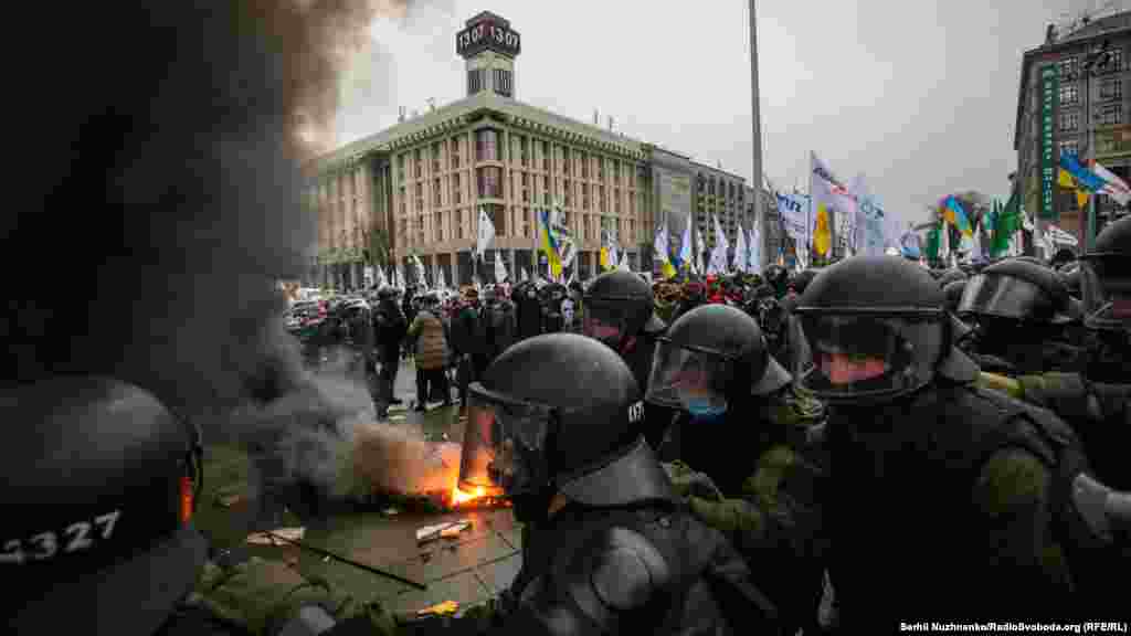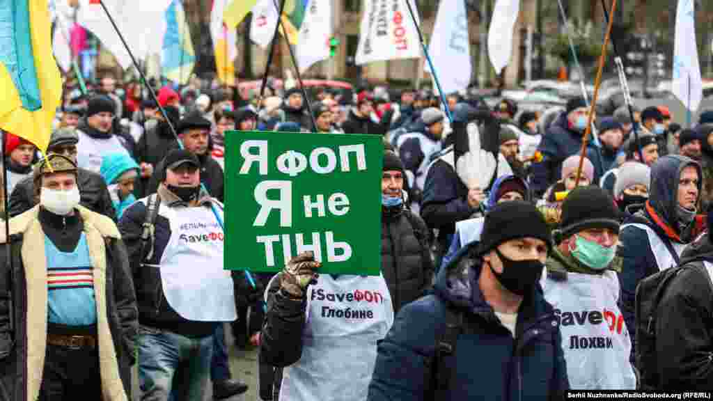 Вранці 15 грудня приватні підприємці – учасники руху #saveФОП – укотре вийшли на мітинг у центрі столиці. Розпочалася акція біля Верховної Ради, де учасники вимагали від народних депутатів розглянути і ухвалити законопроєкти щодо спрощеного оподаткування для ФОПів, а також виступали проти запровадження локдауну у січні. Згодом протестувальники пішли на вулицю Банкову до Офісу президента, де запалили фаєри, а згодом перемістилися на майдан Незалежності. Учасники протестів спробували встановити намети, а поліцейські заважали їм це робити – розпочалися сутички.