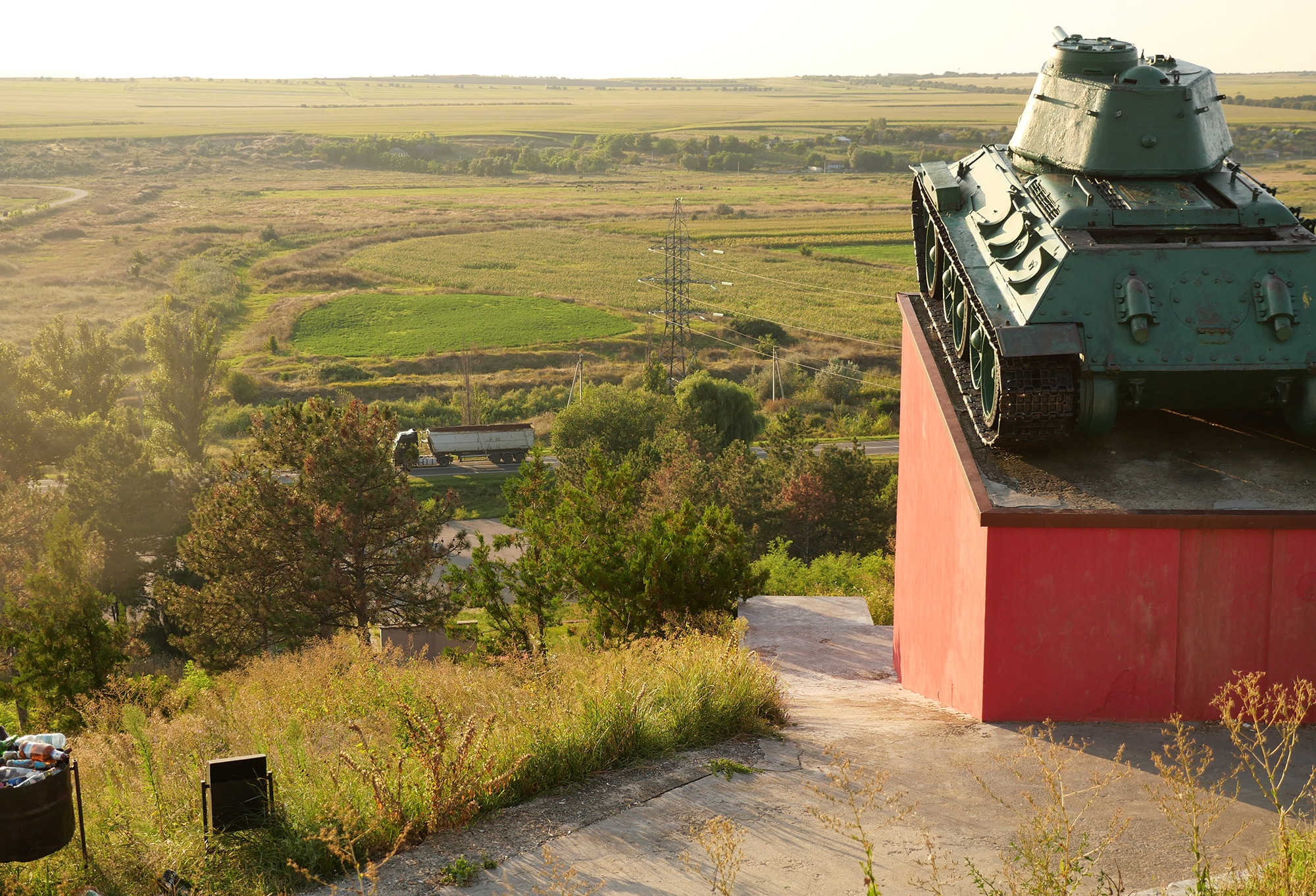 Відкриття у 1969 році військового меморіалу бійцям Червоної армії, які воювали на околиці міста Леушені на заході Молдови під час Другої світової війни. Танк спрямований у бік кордону з Румунією, що видніється вдалині.