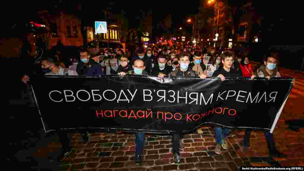 Сьогодні у Києві відбулась всеукраїнської акції «Нагадай про кожного» на підтримку політв'язнів, які досі перебувають у Росії, на непідконтрольних Україні тереторіях Донбасу, та в анексованому Криму.