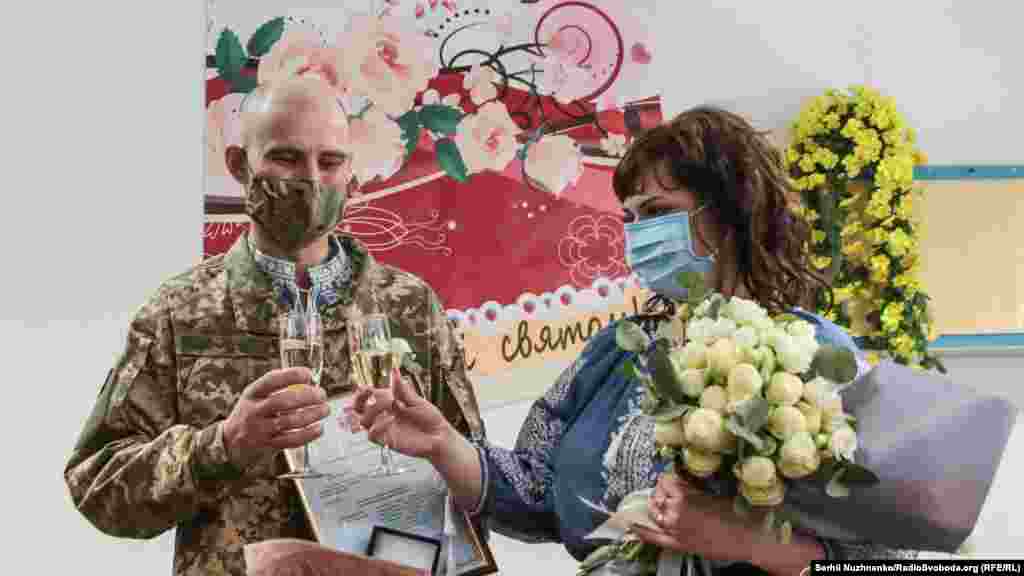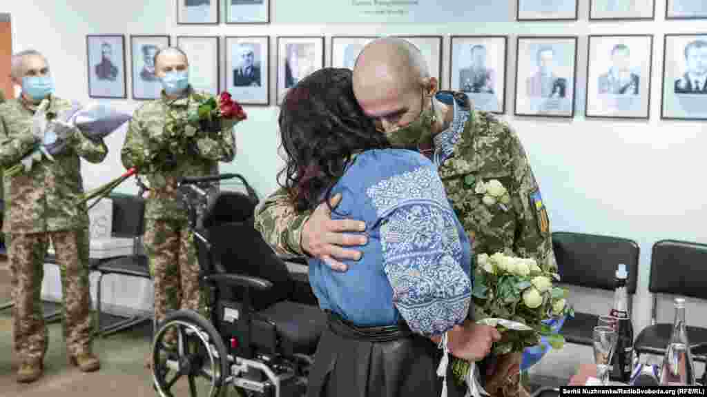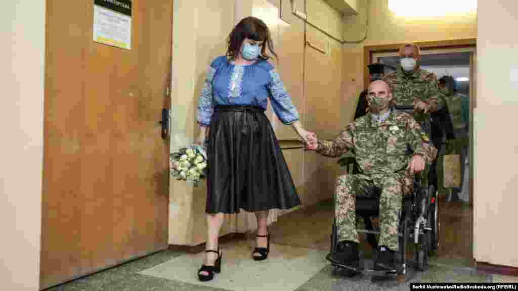 У київському шпиталі пройшла 11-та шлюбна церемонія спеціально для поранених військових. Ігор та Анна вирішили побратися після важкого поранення чоловіка під Авдіївкою, що на Донеччині. Пара планувала побратися раніше, утім війна на сході України внесла свої корективи. Військовий отримав поранення з ушкодженням печінки, нирки та кишківника. На операційному столі він пробув близько трьох годин. За майже місяць лікарі поставили Ігоря «на ноги» і нині він тримає за руку свою уже дружину Анну. Каже «якщо я, враховуючи отримані 2 кулі, досі живий, значить потрібен ще на цьому світі, а особливо своїй родині! Тому щиро дякую усім, хто брав участь у моєму порятунку та допомагає і підтримує мене зараз. Запевняю, що зроблю ще багато корисного!».
