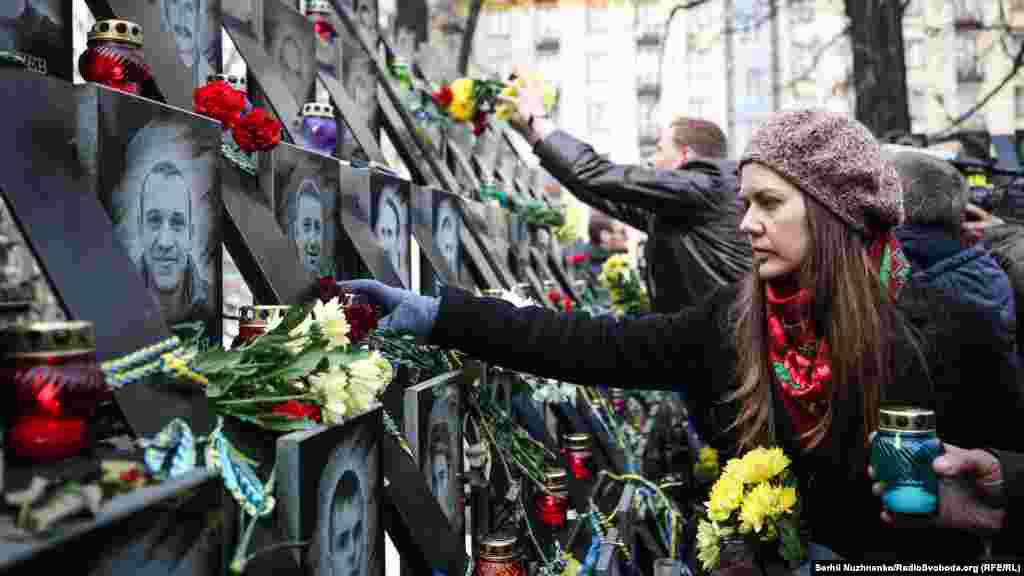Кияни, очевидці тих подій та родичі полеглих принесли квіти та лампадки до Алеї Героїв Небесної сотні. Біля Хреста пам’яті Героїв Небесної сотні відбувся спільний поминальний молебень, присутні вшанували пам’ять загиблих під час подій 2014-го хвилиною мовчання.