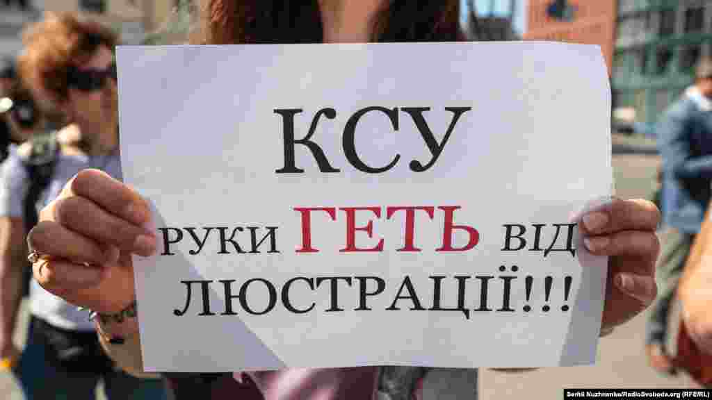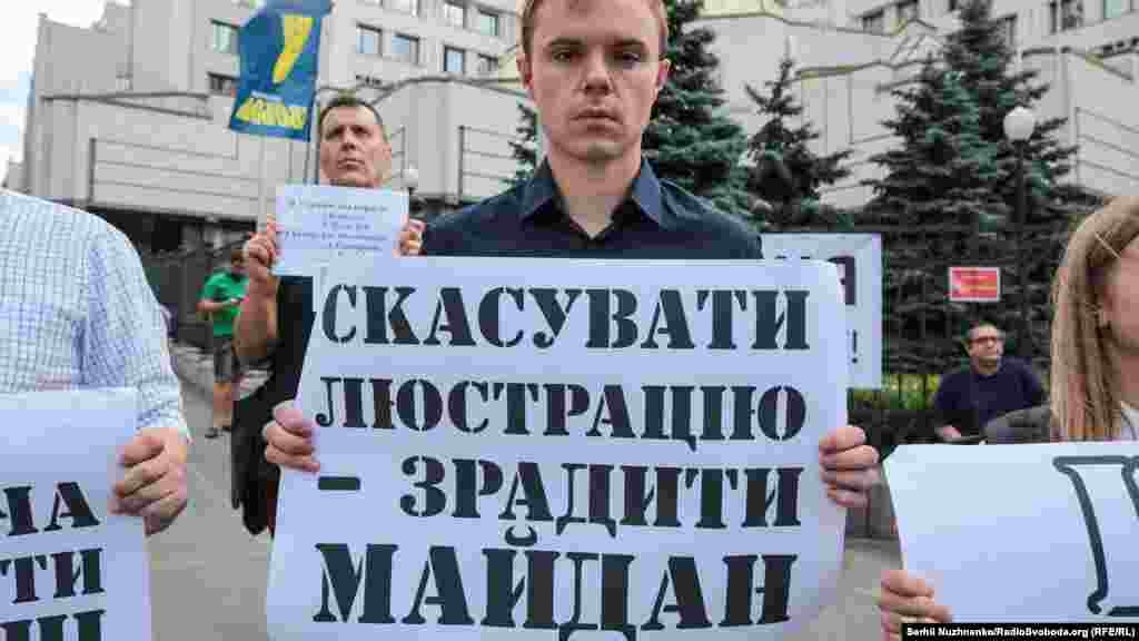 Конституційний суд України 4 липня продовжив розгляд справи щодо відповідності Конституції закону «Про очищення влади». Під стінами суду зібралися кількасот активістів і представників партій, які протестували проти можливого скасування закону про люстрацію.