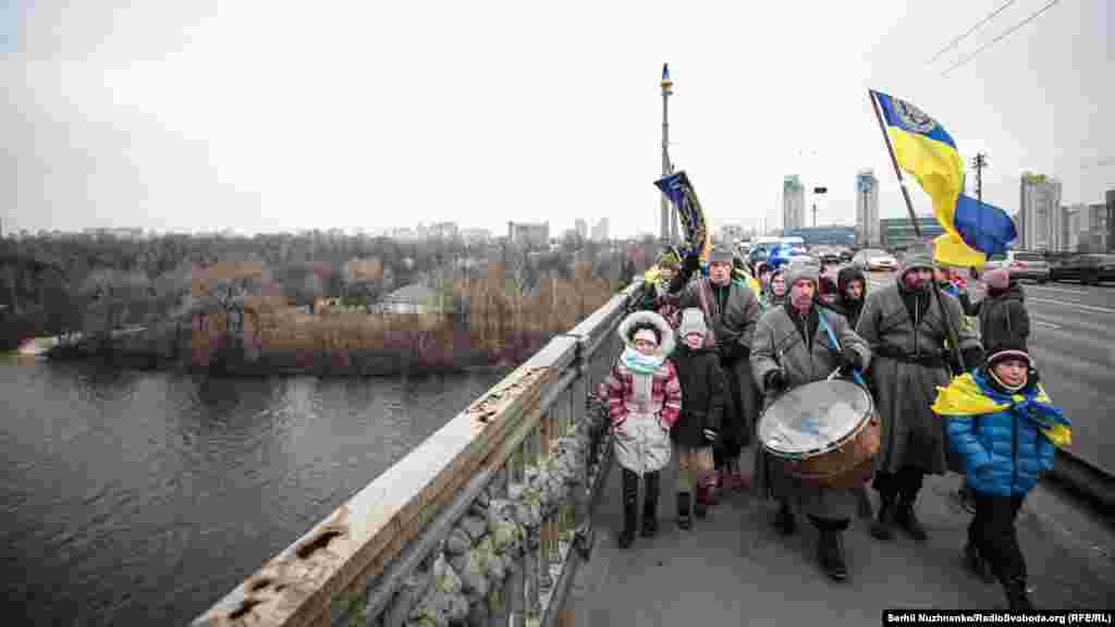 На мосту Патона в Києві відбулася акція «Живий ланцюг Соборності», присвячена Дню Соборності України. Учасники акції із 30-метровим державним прапором утворили «живий ланцюг», яким об'єднали два береги Дніпра. На початку кожної колони йшли барабанщики, які додавали ритму. За традицією, з лівого берега йшла колона «УНР», а з правого – «ЗУНР».