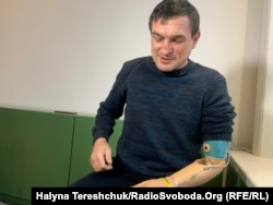 Олександр другий тиждень звикає до протеза. Вже може потиснути чиюсь руку, вчиться користуватись протезом.