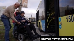 До супермаркету від реабілітаційного центру – дві зупинки громадським транспортом, а саме тролейбусом. Їхати у кріслі колісному нерівним тротуаром, переходячи кілька доріг, долаючи бордюри – йому надто важко, можна й перевернутись.