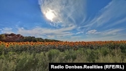 У серпні Радіо Донбас.Реалії віднайшли на околиці Донецька поле соняшників. На той момент вони якраз цвіли, й це створювало картину українського прапора, як це часто буває в українських полях. Світлини зроблені ноподалік донецького мікрорайону Бірюзова, на горизонті ви можете побачити шахту Абакумова та обриси спального району. Ми вирішили показати вам це поле у 30-річчя Незалежності, оскільки зараз це – єдиний прапор, «дозволений» окупаційною адміністрацією в Донецьку та Луганську. Понад 260 людей перебувають у незаконному ув'язненні підконтрольних Росіх сил, в тому числі, за те, що вважають Донбас – це Україна.
