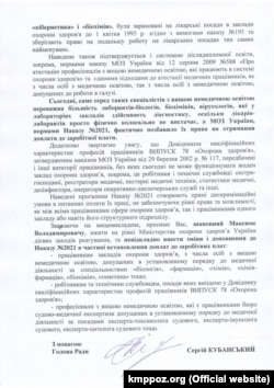 Лист київської міської профспілки працівників охорони здоров’я до МОЗ