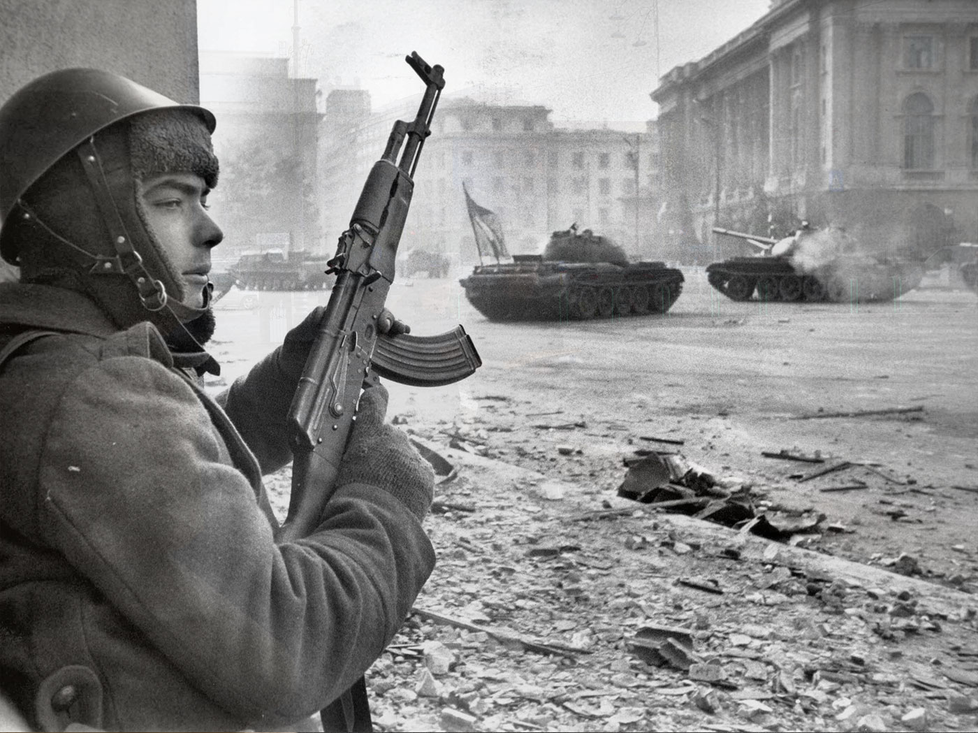 Солдат у центрі Бухареста під час вуличного бою. Charles Platiau/Reuters