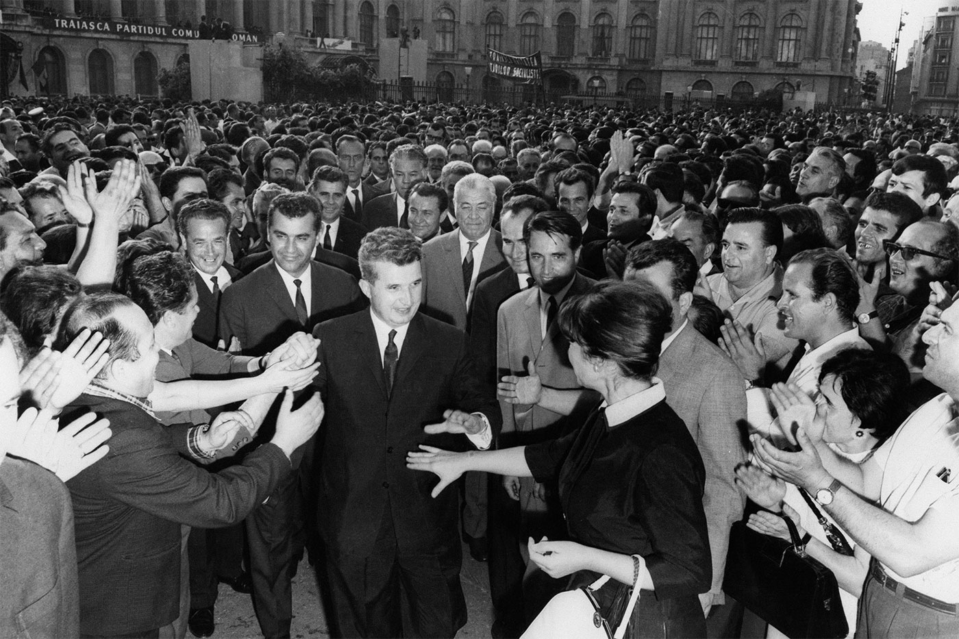 Ніколає Чаушеску серед моря вітань місцевих мешканців у центрі Бухареста, 1970 рік. Interfoto/Alamy