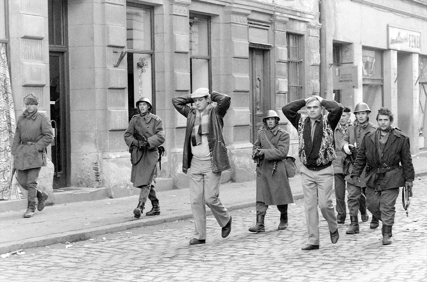 Цих двох людей військові витягли з їхнього авта в Тімішоарі і відводять під прицілом. Fortepan