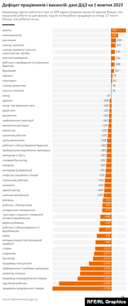 Втім, і офіційні дані показують зріст кількості вакансій, порівняно з минулим роком: 53,2 тисячі на 1 жовтня 2023 року, порівняно з 29,3 тисячами 1 жовтня 2022-го.