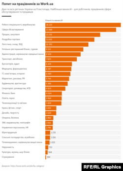 Також дані сайту показують зріст потреби у водіях, робітниках, виробництв, бухгалтерах, кухарях і продавцях-консультантах.