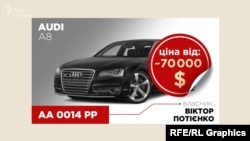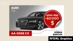 «Ауді А8», на якій «Схеми» також неодноразово фіксували депутата, зареєстрована на громадянку Барсук Олену Анатоліївну.