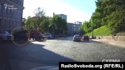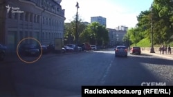 Автівки супроводу бізнесменів залишаються чекати біля перехрестя. Біля бокового заїду за 9 хвилин після заїзду Суркісів вже стояв автомобіль супроводу народного депутата Олександра Грановського.