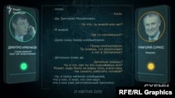 Експерт досліджував голоси п’ятьох людей, не знаючи, хто вони. Це – Дмитро Крючков, Ігор Кононенко, Ігор Котвицький, Ігор та Григорій Суркіси.