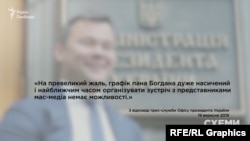Також журналісти намагалися напряму поставити запитання самому Андрію Богдану та його безпосередньому керівникові – президенту Володимиру Зеленському.