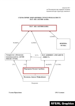 Партнер юридичної фірми «Круглов і партнери» Сергій Круглов додає: «Як свідчать офіційні дані з державного реєстру, на момент ухвалення «Актив-банком» рішення про відчуження активу пані Маркарова була співзасновником цього банку – компанії «Актив фінанс груп». У подальшому на момент укладення угоди щодо відчуження цього активу пані Маркарова також була співзасновником компанії, яка уклала цю угоду як покупець. Тому можна казати про те, що, можливо, вона причетна до цієї схеми щодо виведення активу перед банкрутством банку».
