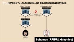 Обидві зареєстровані в окупованій Макіївці за адресою колишнього гіпермаркету «Епіцентр». «Галактику» через «Донстрой» контролює Олена Швидка. А власником «Наместника» є Геннадій Гальчук.