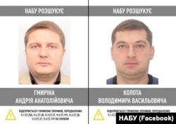 НАБУ розшукує Андрія Гмиріна та Володимира Колота з квітня 2023 року.
