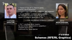 «Схеми» отримали раніше неопубліковані, повні розмови військовослужбовця Шматова, які вдалося перехопити. Ці розмови демонструють уявлення російських громадян, зокрема, через призму його батька – про життя в Україні.