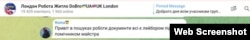 Telegram-канали з пошуку роботи, в яких був активним один із підозрюваних українців у підпалах майна, пов'язаного із прем'єром Великої Британії