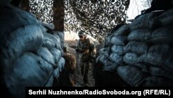 Солдат спостерігає за позиціями підтримуваних Росією сил, які розташовані менш ніж за сотню метрів Фото:Serhii Nuzhnenko/RadioSvoboda.org (RFE/RL)