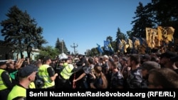 Під стінами парламенту зібралося близько тисячі прихильників «Національного корпусу» та «Національних дружин». Один із учасників в руках тримав листівки із зображенням іноземців-добровольців, які воювали на сході України, там і загинули. Листівки намагалися роздати правоохоронцям, які забезпечували охорону порядку під Верховною Радою. Між ними спочатку сталося непорозуміння, а згодом зчинилася невеличка сутичка. Щоправда, внаслідок тисняви один із поліцейських постраждав. У Національній поліції запевнили, що ситуацію всю задокументували та згодом нададуть правову оцінку.