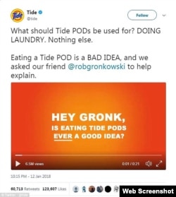Тоді й менеджери з комунікацій торгової марки Tide вирішили втрутитись та написали попередження про те, що капсули для прання використовувати потрібно лише для прання.