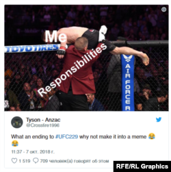 Після карколомного прийому перемогу одержав росіянин. Бій дивилися мільйони глядачів у всьому світі. І, здається, стільки ж мемів на цю тему з’явилось у соцмережах.